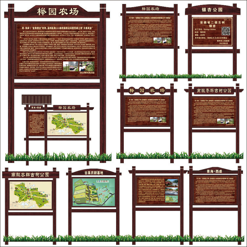防錆木材掲示板掲示板景勝地標識紹介板木製表示板屋外広告板花と草の標識