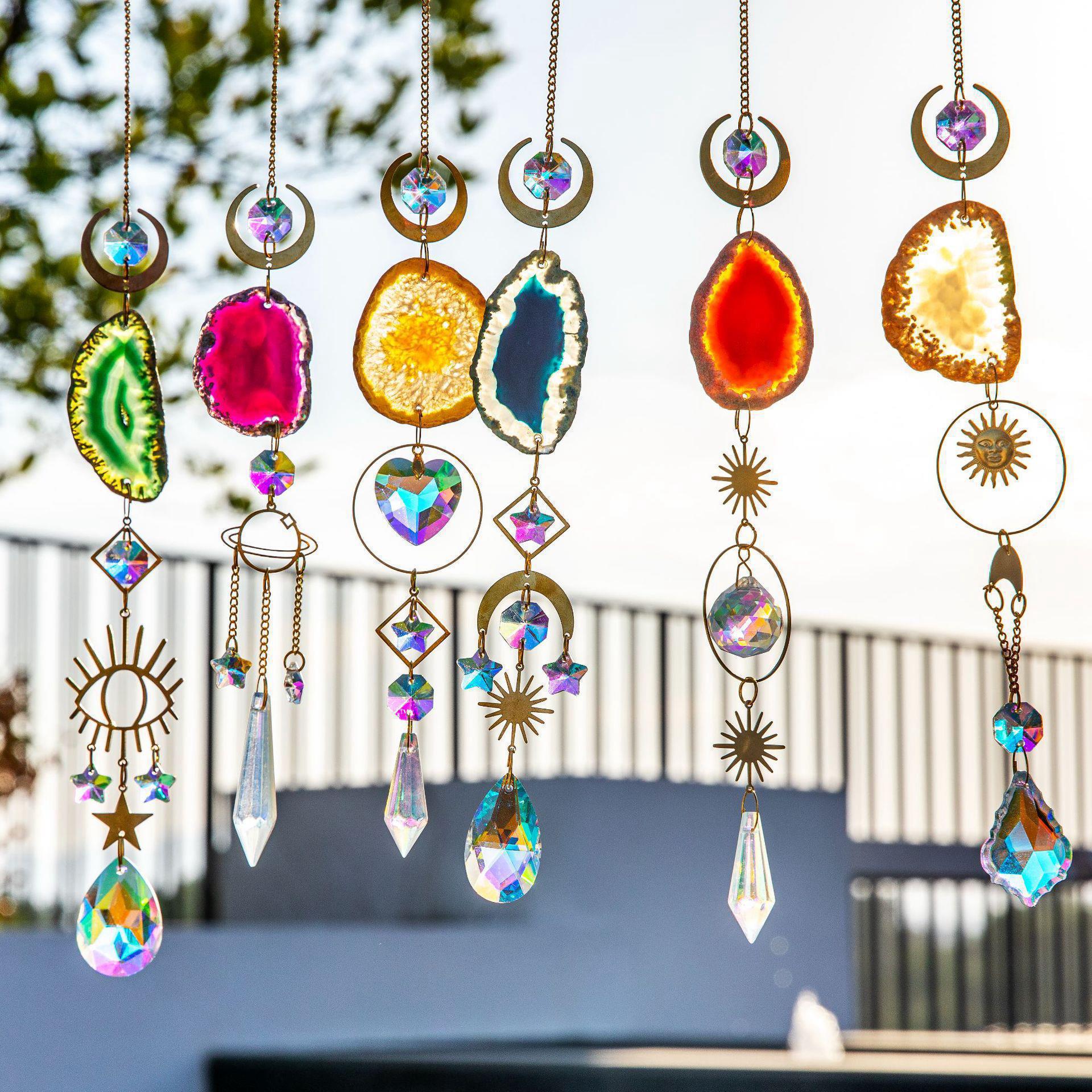 サンキャッチャー人工瑪瑙原石クリスタルプリズムカラフルなレインボーガールハートガーデンウィンドウバルコニーツリーペンダント