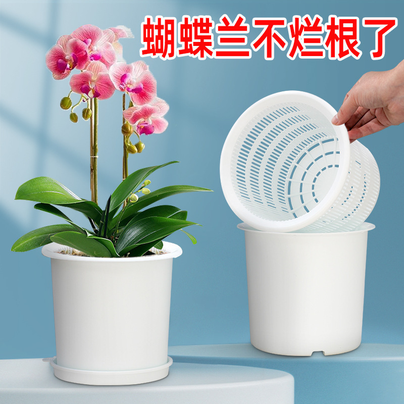 Meishi 胡蝶蘭根制御植木鉢通気性ガロンプラスチックオーキアデンドロビウムオンシズム蘭ポット二層ナヨウ