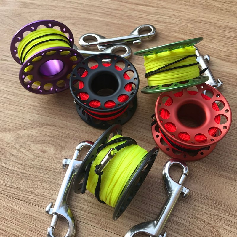 象ダイビングリールアルミ合金金属ダイビングスプール 30m ナイロンフラットラインブイ SMB コイル