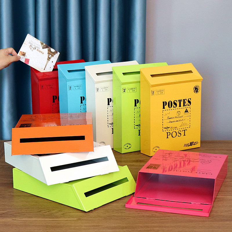 ロック付きレトロなブリキのメールボックス、意見ボックス、壁掛けボックス、家の装飾、写真の小道具、壁の装飾