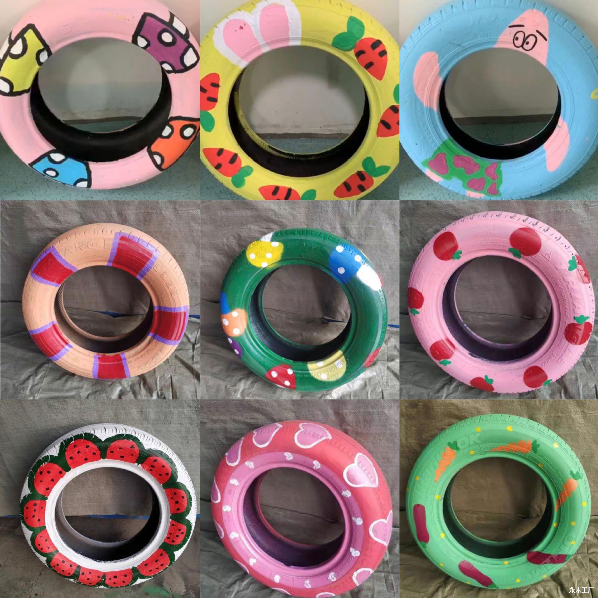 タイヤ装飾改修幼稚園屋外落書き塗装 diy 手作り廃タイヤ植木鉢装飾品