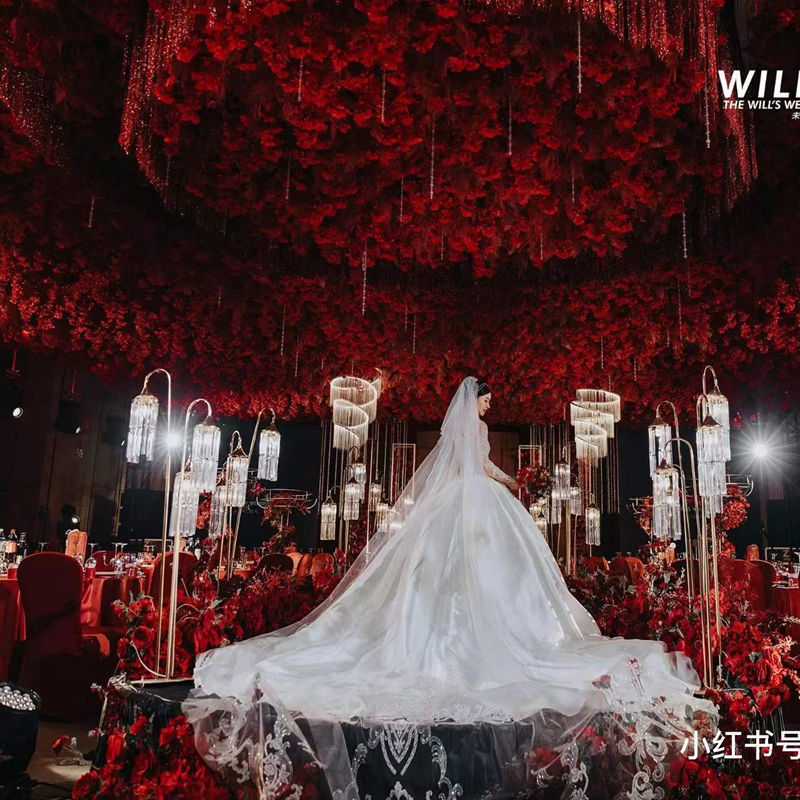 ウェディングレッド造花アジサイローズフラワーアレンジメントワインレッド造花天井装飾花ウェディングシルクフラワー