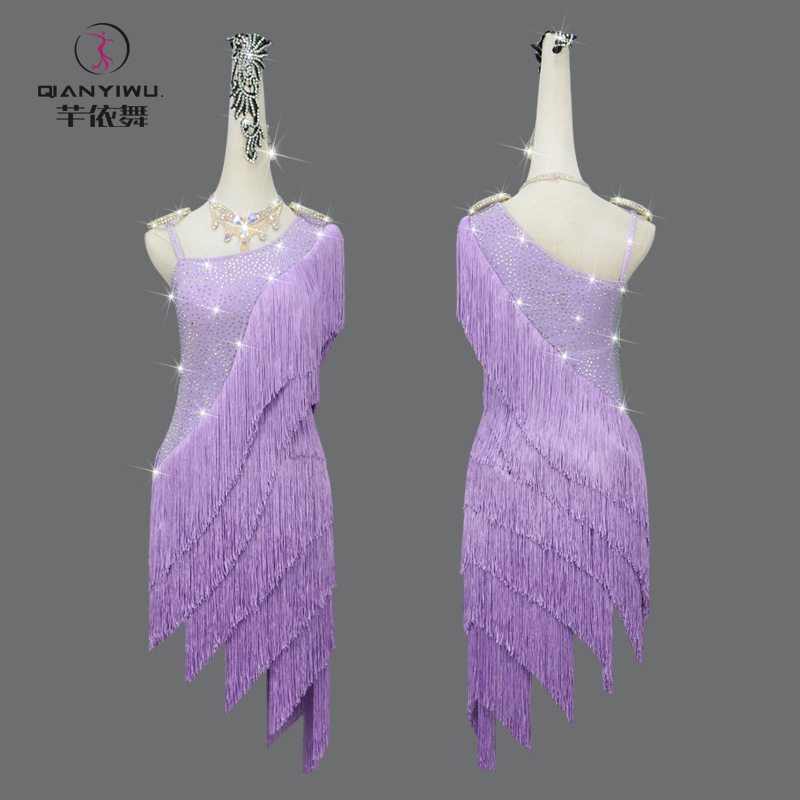 2025 新しいプロフェッショナルパープルラテンダンス競技パフォーマンス衣装タッセルジャンプスーツダンススカートソロ芸術試験