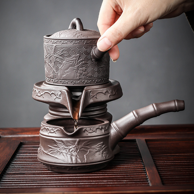 紫砂自動ティーセットホームオフィスレセプションティーポットカンフーティーカップ小さなセット怠惰なティーメイキングナヨウ