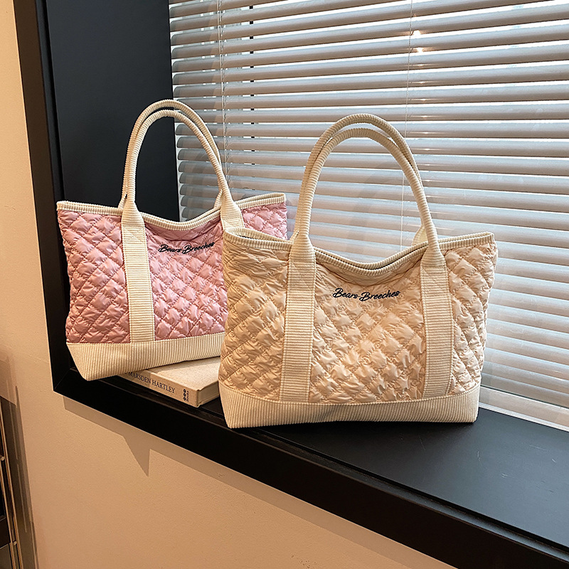 2024韓国の大衆キャンバスバッグは、綿を挟んだカジュアルなハンドバッグをつなぎ合わせて通勤してレジ袋を収納する