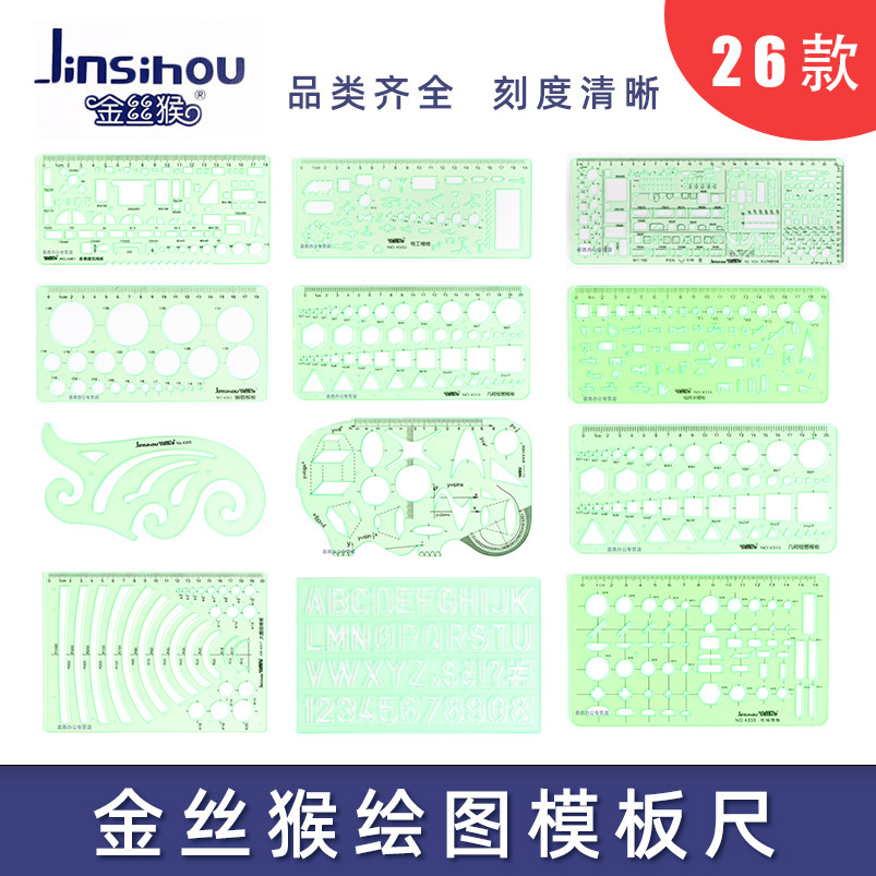 作図テンプレート金糸猿テンプレート26種類の異なるパターンテンプレート円形楕円形方形多機能作図尺