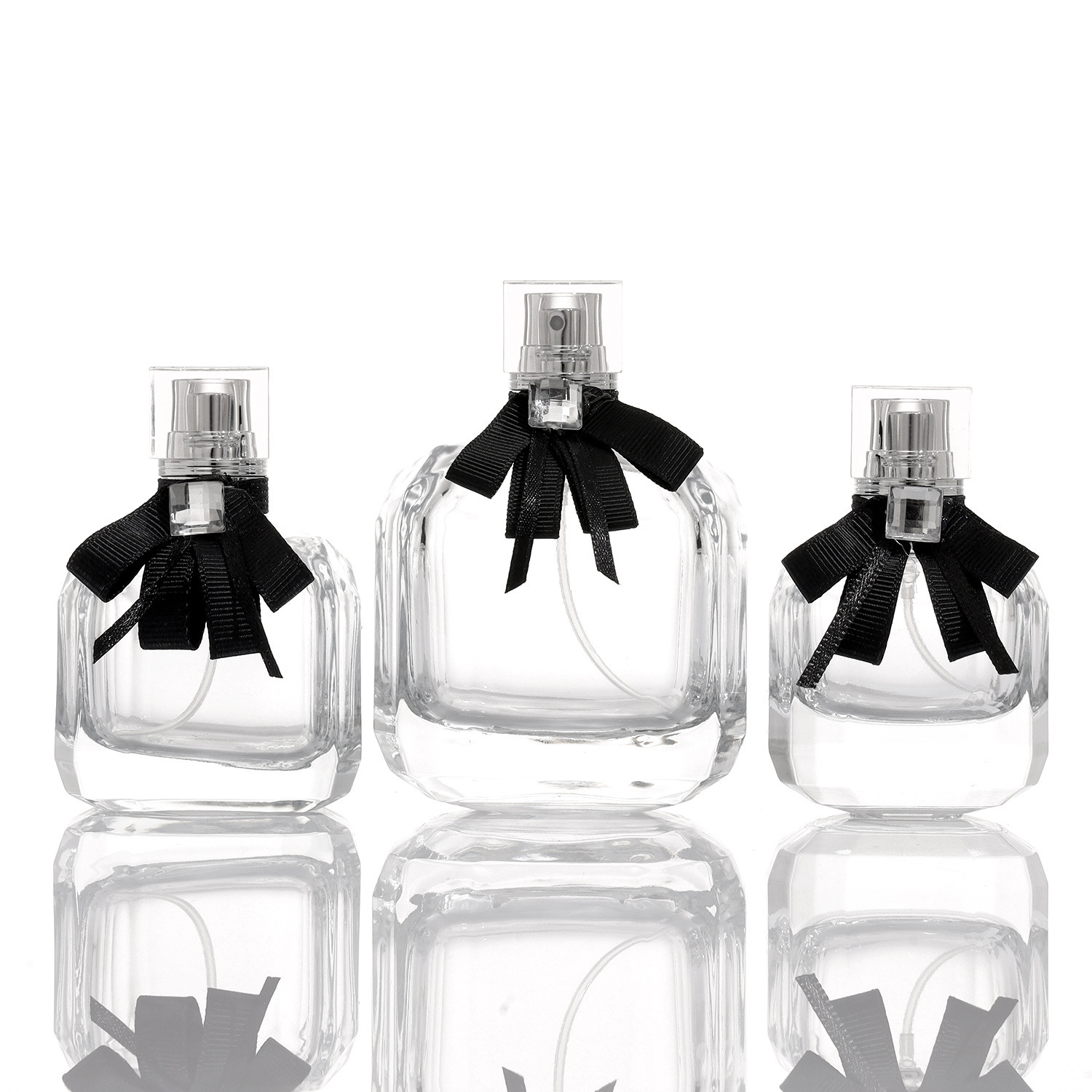 スポット卸売新しいリボン香水瓶高価値透明増粘ガラス香水瓶 30ml-100ml ボトル