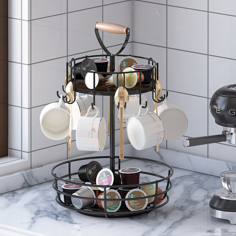 国境を越えた客間のコップ収納棚家庭用テーブルコーヒーカプセル整理棚二重回転可能円形収納バスケット