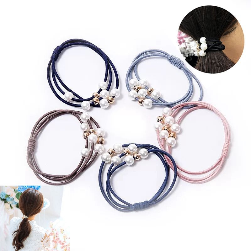 韓国の多層真珠の皮筋の気質は真珠の金の玉の9玉の髪の縄を合わせてかわいいです。