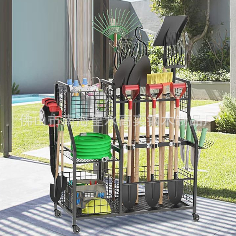 クロスボーダー専用ガーデンツール収納棚車庫物置棚ほうきシャベルアメリカ式塗装木金属整理棚