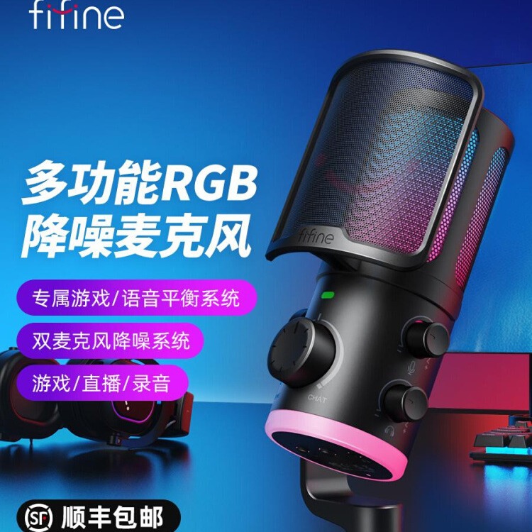 Fifineゲームマイクコンテストライブ録音USBパソコンデスクトップノート音声ノイズ除去マイクAM6