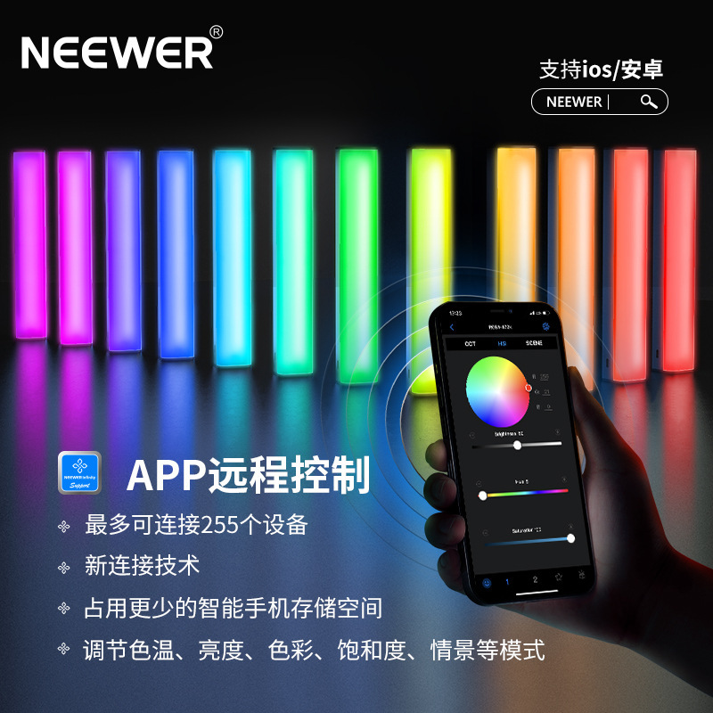 鴻図neewer/ニュルrgb1カラー手持ち棒灯led撮影補光灯磁気吸氷灯電池a付き