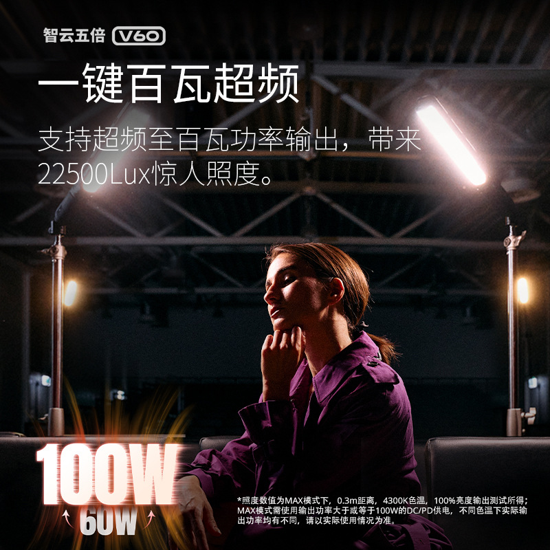 鴻図智雲五倍v 60手持ちled補光灯100w生放送光影灯屋外撮影棒灯アナウンサー
