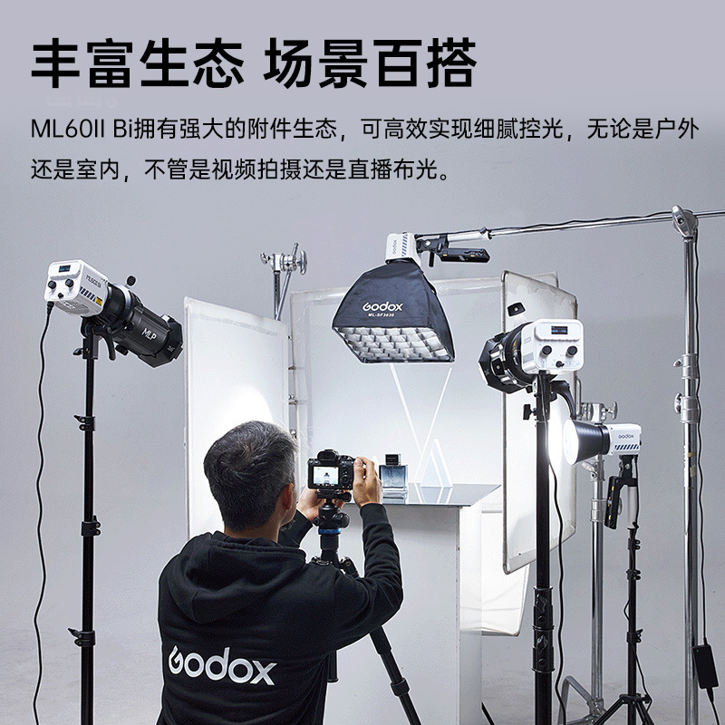 鴻図Godox神牛ml 60ii Bi撮影灯70wapp制御屋外携帯外拍LED補光灯
