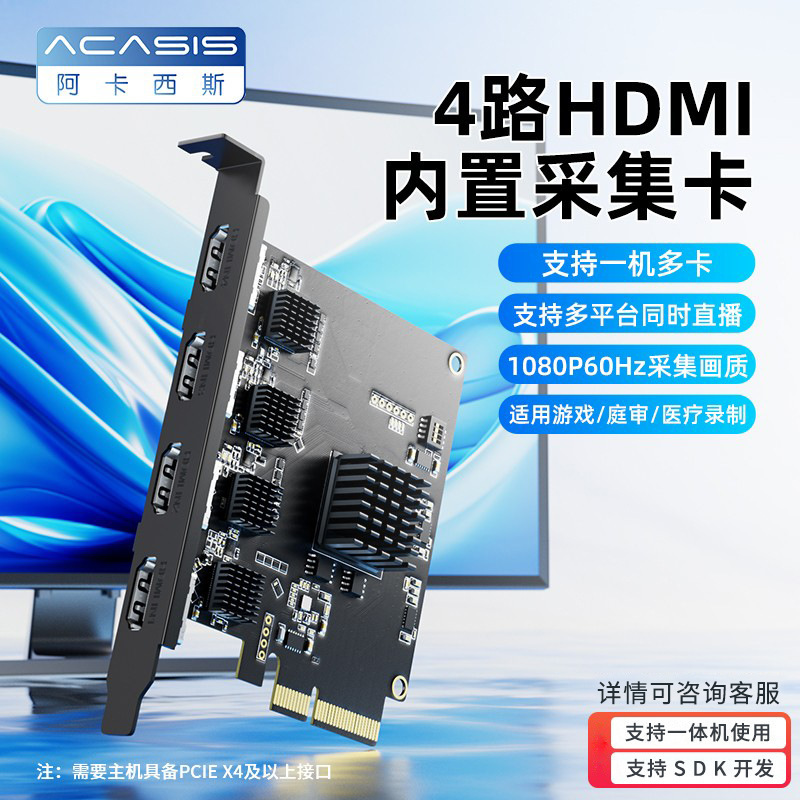 Akasis 4 ウェイ PCIe キャプチャ カード内蔵 HDMI 高解像度ビデオ デュアル 4K キャプチャ SDI ライブ ブロードキャスト