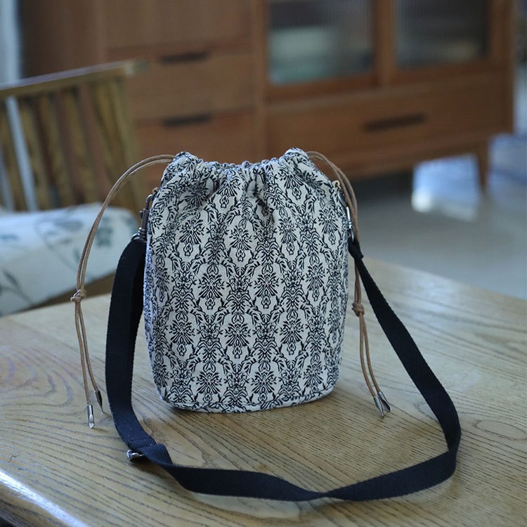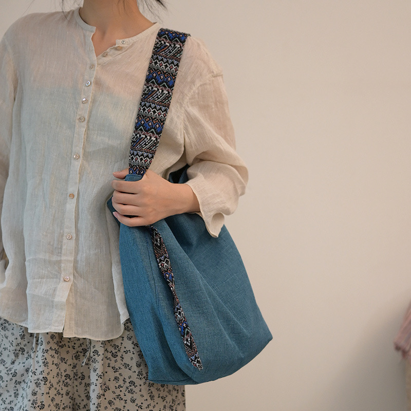 レトロなコットンとリネンのハイエンド文学キャンバスバッグレディースカジュアル日本製ショルダートートバケットバッグハンドバッグクロスボディ