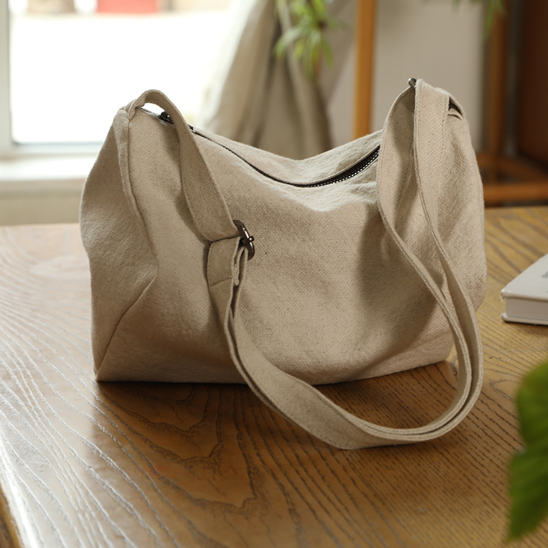 日本式キャンバスバッグ綿麻文芸女性ショルダーバッグ