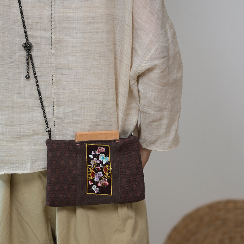 Yongyong 布バッグ女性のクロスボディ 2025 新しい文学綿とリネン刺繍携帯電話バッグ軽量 Zhuoliang ハイエンドハンドヘルド小さなショルダーバッグ