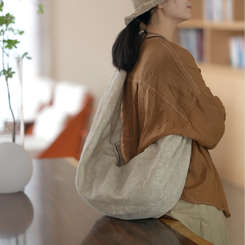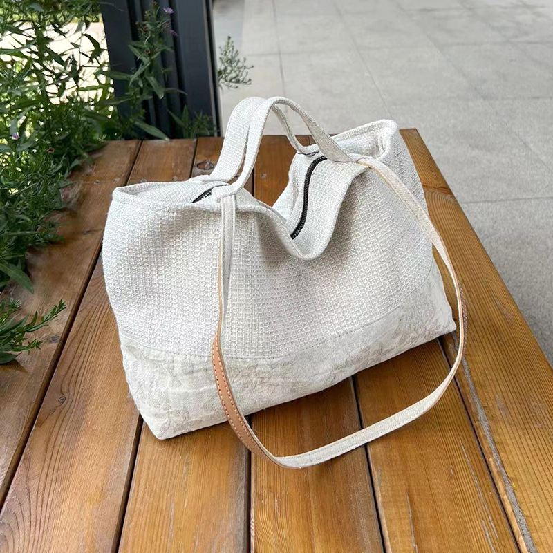 オリジナルショルダーバッグキャンバストートバッグ大容量レディース通勤ハンドバッグ文学シンプルなコットンとリネンのニッチデザインバッグ