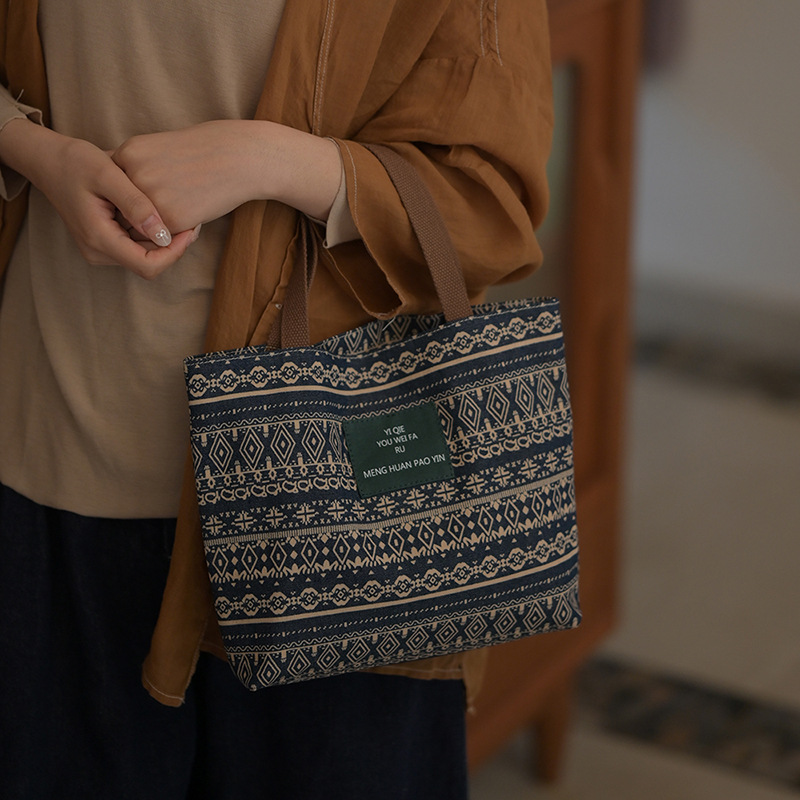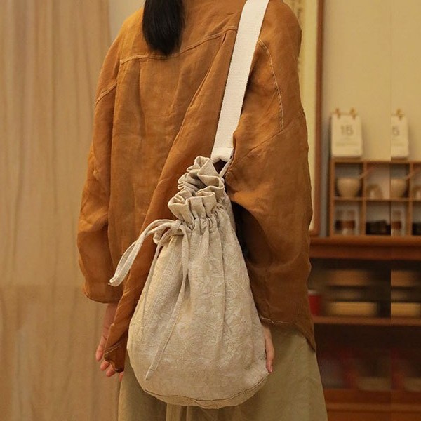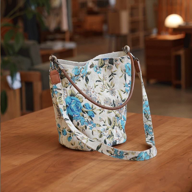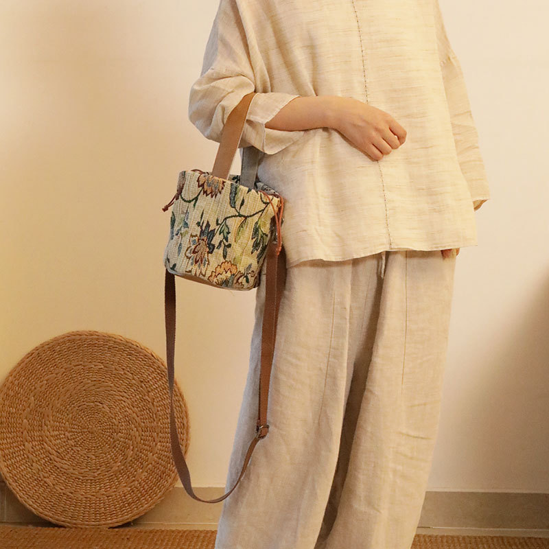 凡庸復古民族風新作文芸手提げ斜め掛けバケツバッグ綿麻錦織刺繍レディース新国朝風