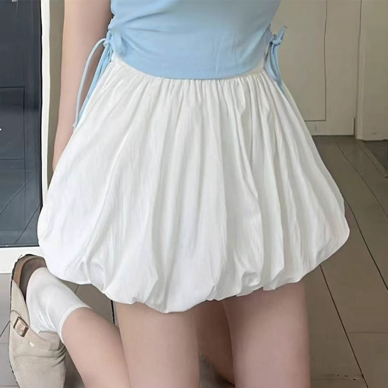 白いふわふわ花のつぼみスカート女性の夏薄い 2025 新しいハイウエスト A ラインアイスシルクパンツルーズカジュアルスタイルショーツ