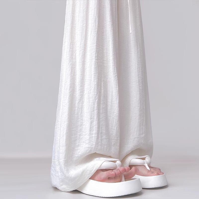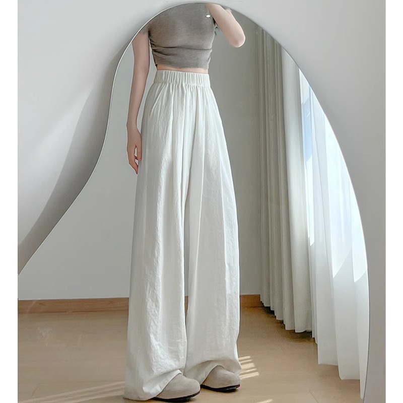ホワイトコットンとリネンアイスシルク山本パンツ女性の夏薄い 2025 新しいハイウエストスリムルーズドレープカジュアルワイドレッグパンツ