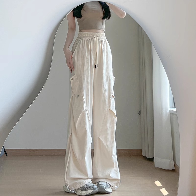 アメリカンアプリコット速乾性オーバーオール女性のための夏の 2025 新しいハイウエストスリムルーズストレートスポーツカジュアルパンツ