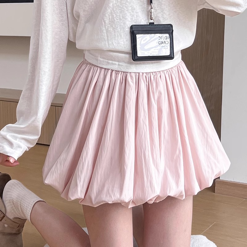 女性用ピンクふわふわ花のつぼみスカート、夏用ハイウエストAラインパンプキンパンツ、小柄な人用露出防止アイスシルクカジュアルショーツ