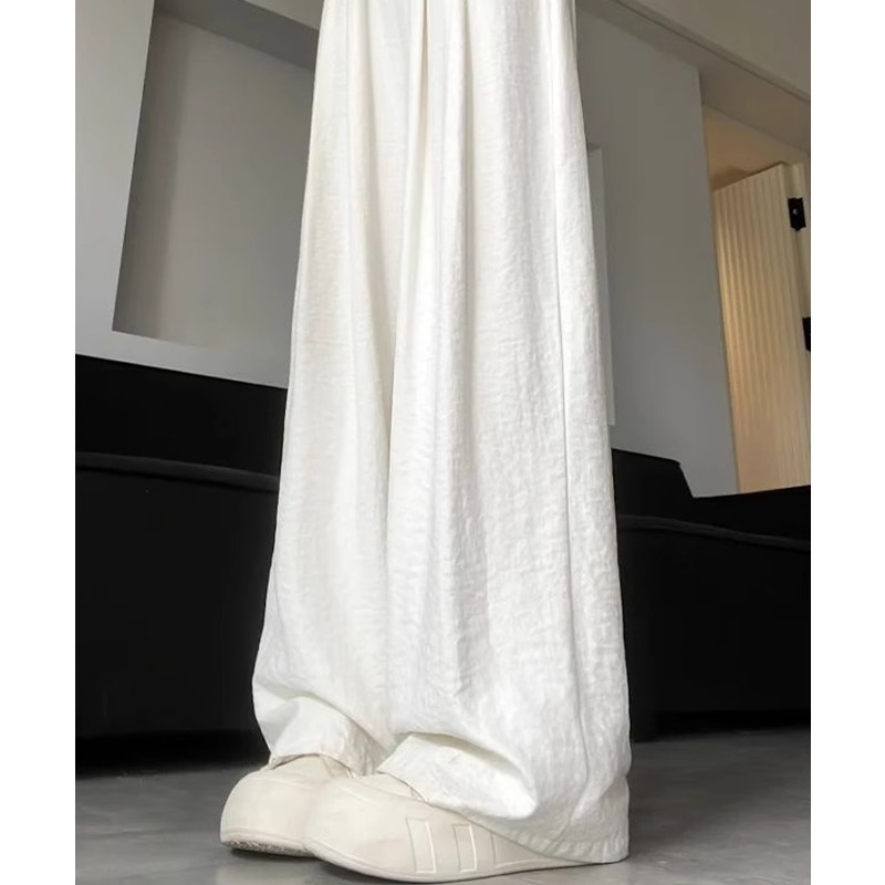 ホワイトカジュアル山本パンツ女性の夏薄い 2025 新しいハイウエストルーズドレープ怠惰なスタイルアイスシルクワイドレッグパンツ