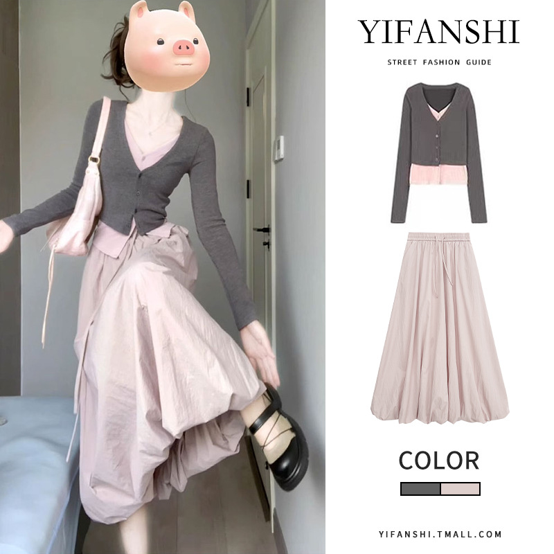 ピンクの蓬蓬のつぼみの半身のスカートの女性の夏の2025新型の小さい背の高い腰はやせている氷の提灯の中で長いスカートを現します。