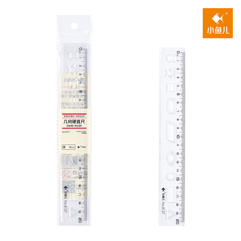 小魚20cmオフィス直尺プラスチック透明定規学生絵画上質測定直尺