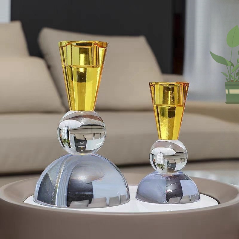 浦江の軽い豪華な水晶のガラスの燭台のろうそくの台の家庭用のロマンチックなろうそくの光の夕食の道具の食卓の装飾品の置物