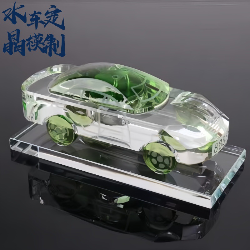 クリスタルガラスの車の模型は質感があります。