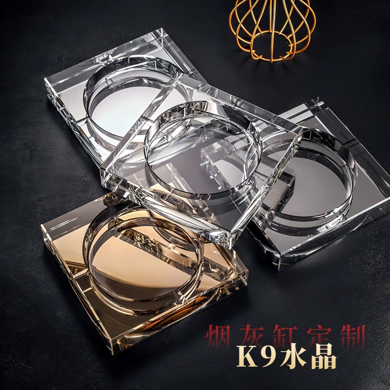 浦江クリエイティブ四方シリーズクリスタルガラス灰皿、軽奢で上品、シンプル、ホテル、家庭、リビング、オフィス用