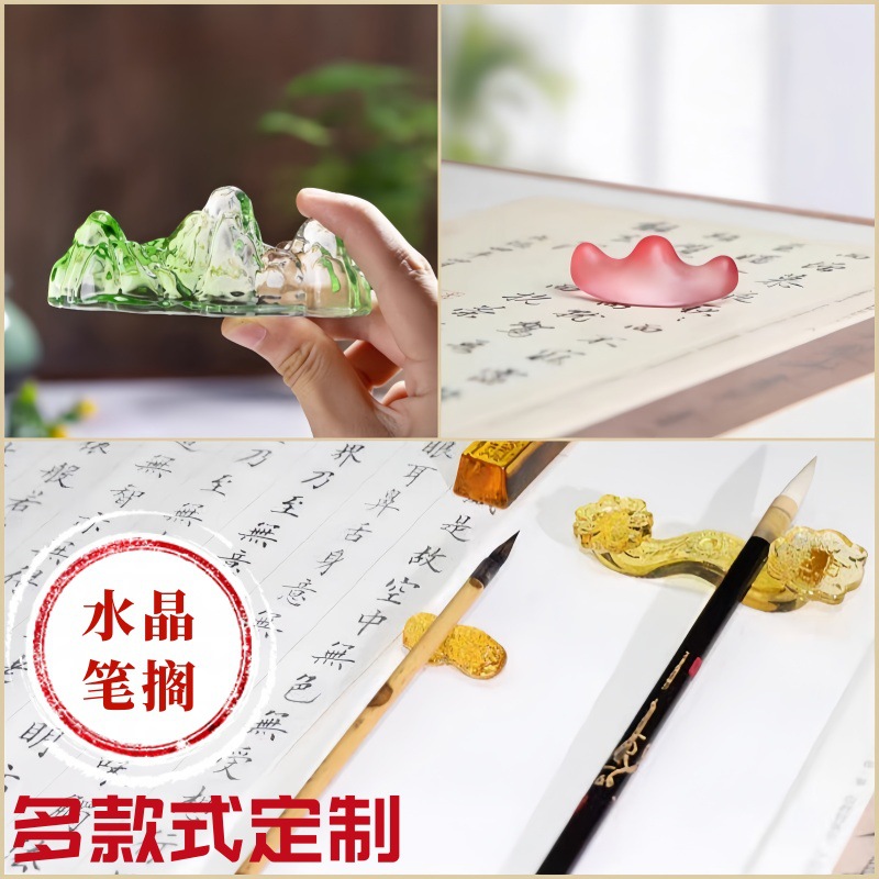 水晶のガラスの筆は文房の4宝の創意の筆を置いて装飾の書道の用品の毛筆の棚の家庭用品の記念の贈り物を託します。