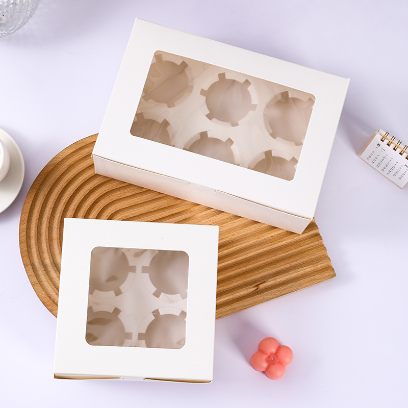 メーカー直販2/4/6/12格白カード牛革マフィン箱紙コップケーキ箱卵箱には内托が含まれている