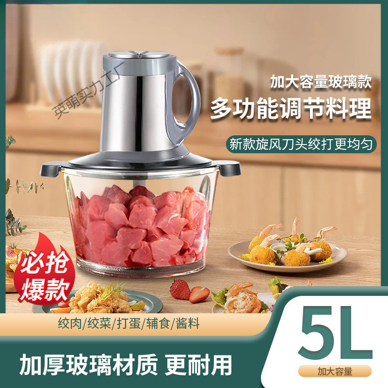 ドイツひき肉機透明ガラスカップ家庭用小型料理機ミキサーにんにく蓉唐辛子多機能粉砕機