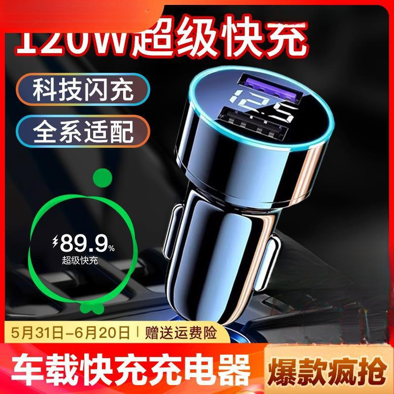 120 ワット車の携帯電話充電器 66 ワット超高速充電 1 対 2 車のシガーライター変換ヘッドマルチ USB 車