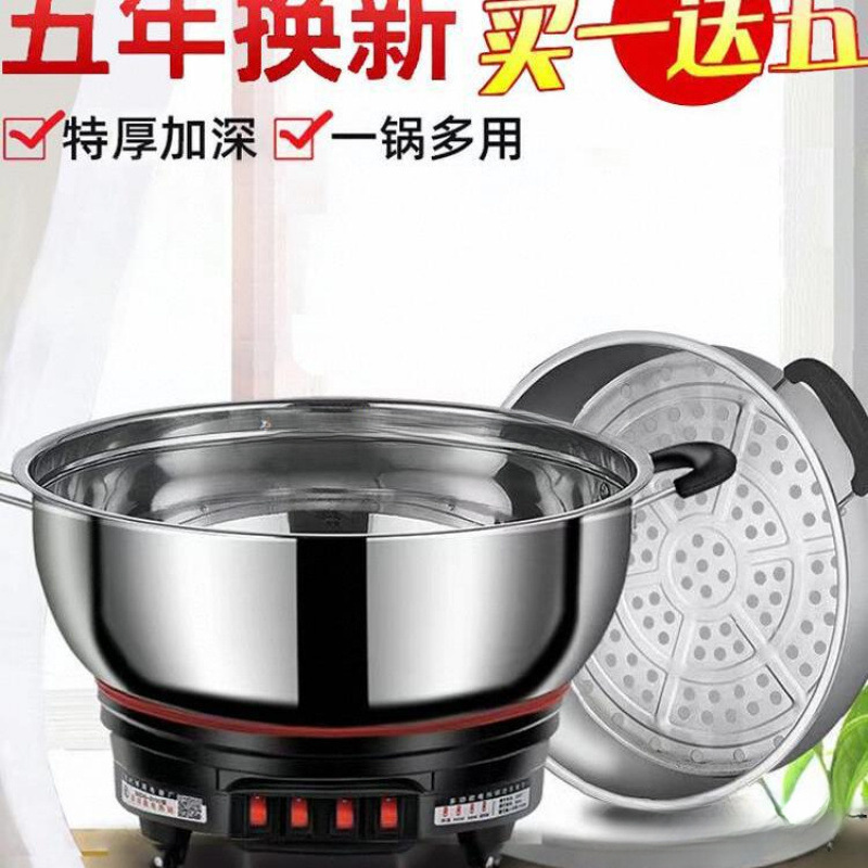 電気鍋多機能家庭用調理電気中華鍋鍋蒸しと煮込みオールインワンプラグインハイパワーステンレス鋼電気鍋