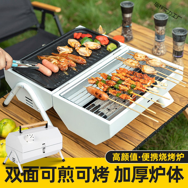 新しい八角形煙突ストーブ屋外便利なカーボングリル家庭用ポータブル両面バーベキューグリル
