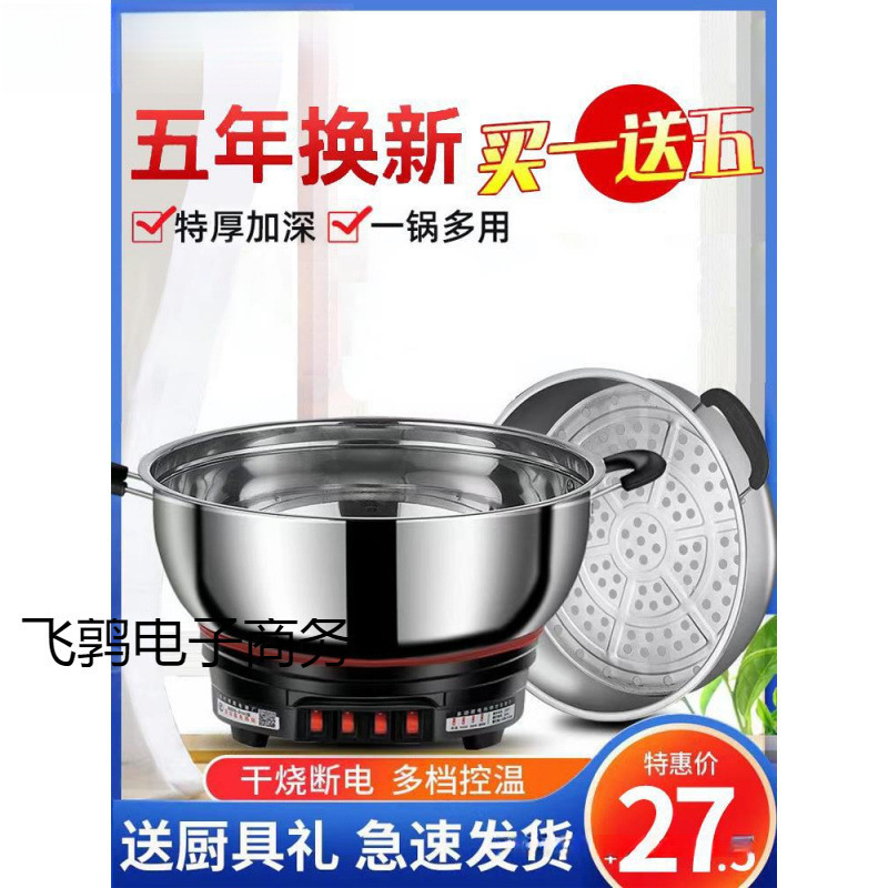電気鍋多機能家庭用調理電気中華鍋オールインワンプラグイン大容量ステンレス鋼電気鍋蒸しと煮込み鍋