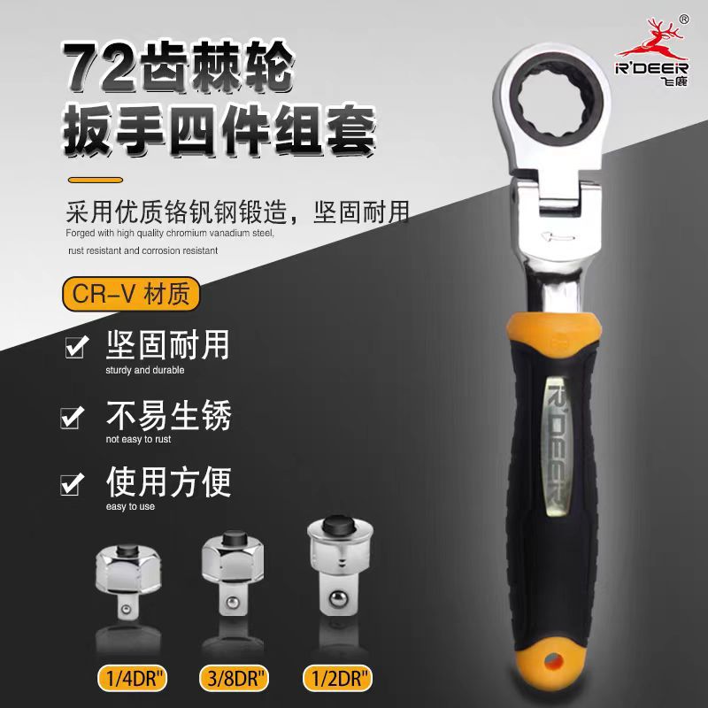 Feilu Tools 4 ピースクロムバナジウム鋼滑り止めハンドルラチェットレンチセット兼用クイックリバースアダプター卸売