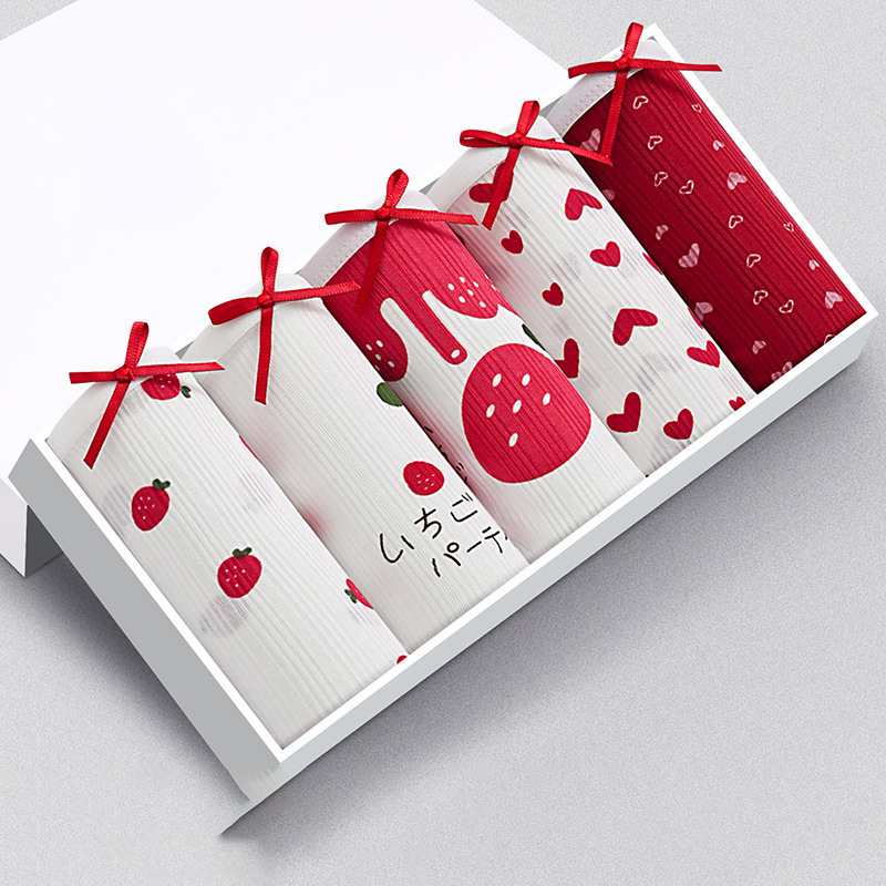 中腰の下着の女子学生の通気性のパンツの甘いプリントのイチゴのかわいいアニメの日本の少ない女性の三角の下着の頭