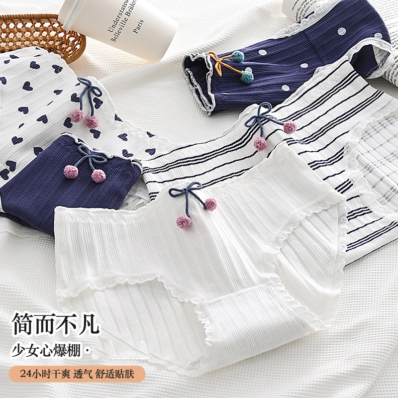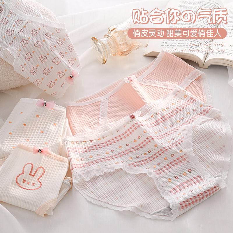 女性の下着女性の甘いプリント夏通気性ミッドウエスト快適な女子学生日本のかわいい三角パンティー