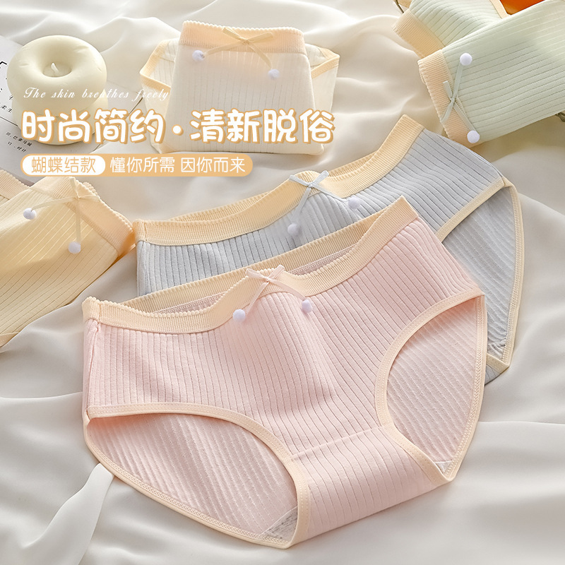 若い女性や学生向けの新しい日本製ミルクシルク下着、蝶結び、ミッドウエスト、通気性と柔らかい新しいブリーフ卸売