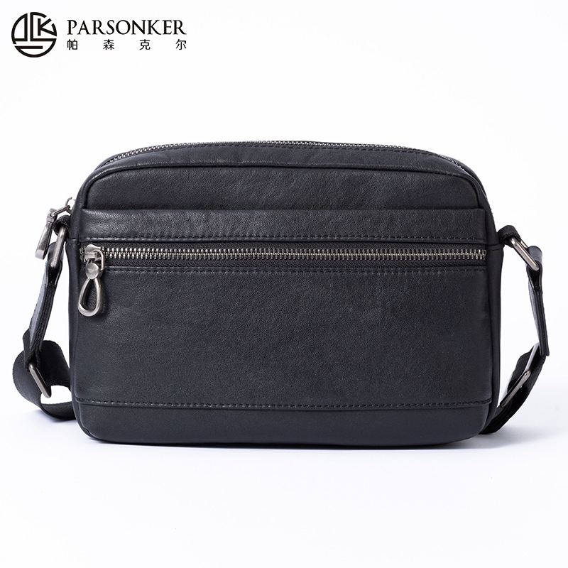 シンプルな男性の本革は斜めにバッグにまたがっています。