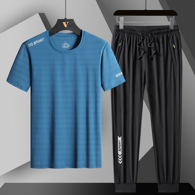 アイスtシャツの長ズボン2点セットのカジュアルスポーツ夏の男性は太って9分のズボンのベストの通気性が速くなります。