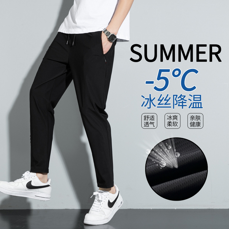 夏の薄い氷のズボンの男性の目の速乾のカジュアルなズボンの男性のゆったりしているプラスのサイズのエアコンのスポーツのズボン