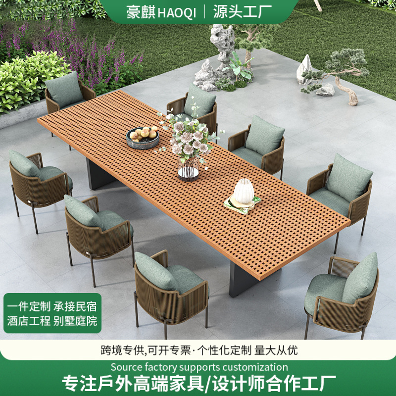オーダーメード屋外籐椅子庭ガーデン防水日焼け止め木製テーブルと椅子ホテル別荘屋外籐編みテーブルと椅子の組み合わせ